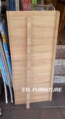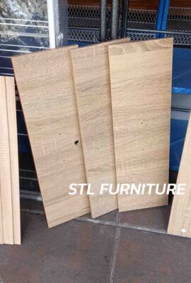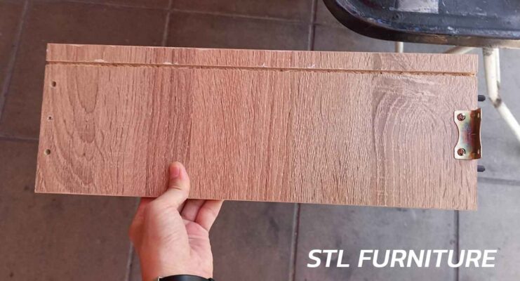 แผ่นนี้คือแผ่นพื้นตู้ (วิธีสังเกตคือ เป็นแผ่นยาว 120 cm ด้านหนึ่งปิดผิว มีรูตรงกลางแผ่นสำหรับยิงแผ่นกั้น อีกด้านหนึ่งไม่ผิดผิว เพราะซ่อนอยู่ด้านล่าง)