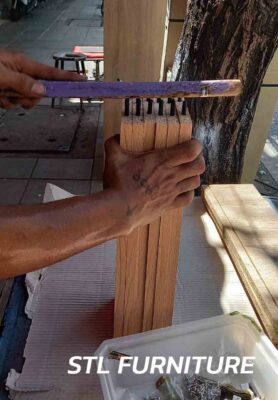 ตอกเดือยที่แผ่นข้างทั้ง 2 ด้าน ทำแบบนี้ให้ครบทุกแผ่น
