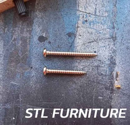 ยิงเหล็กฉาก โดยใช้น็อตสั้นหัวกลม กะให้อยู่กึ่งกลางระหว่างเดือยซ้ายขวา เหล็กฉากตัวนี้มีไว้ดึงหน้าบานกับแผ่นข้าง