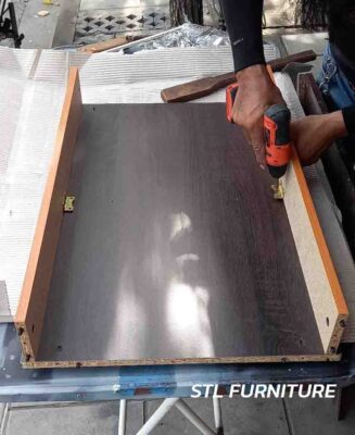 ประกอบเข้ากับฐานตู้และยิงน็อต แผ่นข้างอีกแผ่นก็ทำแบบนี้เช่นเดียวกัน