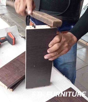 ต่อมาเราจะมาทำแผ่นฐานตู้ ให้ท่านตอกเดือยและใส่พุกพลาสติกให้เรียบร้อย