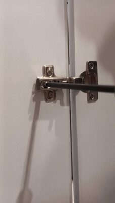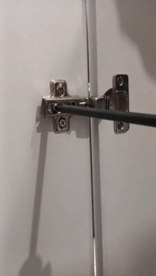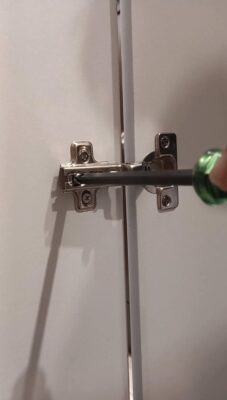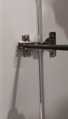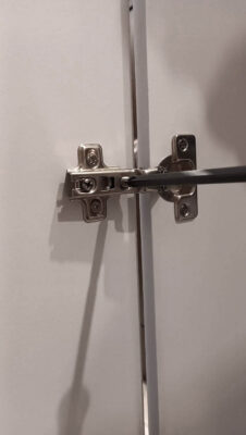 - ตั้งบานประตูตู้ (น็อตตัวนี้เป็นตัวตั้งบานประตู หมุนเข้าประตูชิดเข้า คลายออกประตูถอยออก) ลองปรับดู หากประตูชิดเกินไป ให้คลายน็อตออก ปรับจนกว่าประตูจะตรงจนเป็นที่น่าพอใจ