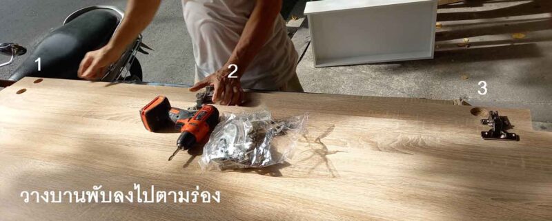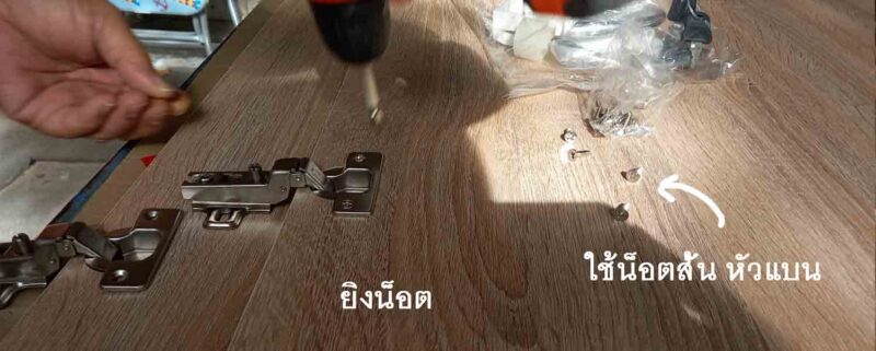 ขั้นตอนที่ 1 ยิงบานพับกับบานประตูตู้
