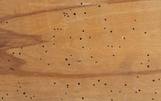 ไม้มีร่องรอยถูกเจาะเป็นรู