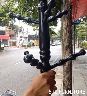 - 3 ราวท่อนบน มีเกลียวเหล็กที่ปลายด้านหนึ่ง ด้านหนึ่งเป็นโค้งมน