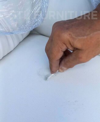 โซฟาที่เราจะสาธิตในวันนี้คือ โซฟาหุ้มหนัง PVC สีขาว โซฟาสีขาวมักเลอะง่ายเป็นพิเศษ ที่ว่าเลอะง่ายไม่ใช่หมายถึงสีอื่นๆไม่เลอะ สีอื่นๆก็เลอะเช่นเดียวกัน เพียงแต่มองเห็นยากกว่า เลยแลดูไม่ค่อยสกปรกเท่าสีขาว สีขาวหากเลอะเปื้อนจะมองเห็นชัด เพราะเหตุนี้โซฟาสีขาวจึงต้องได้รับการดูแลเป็นพิเศษ