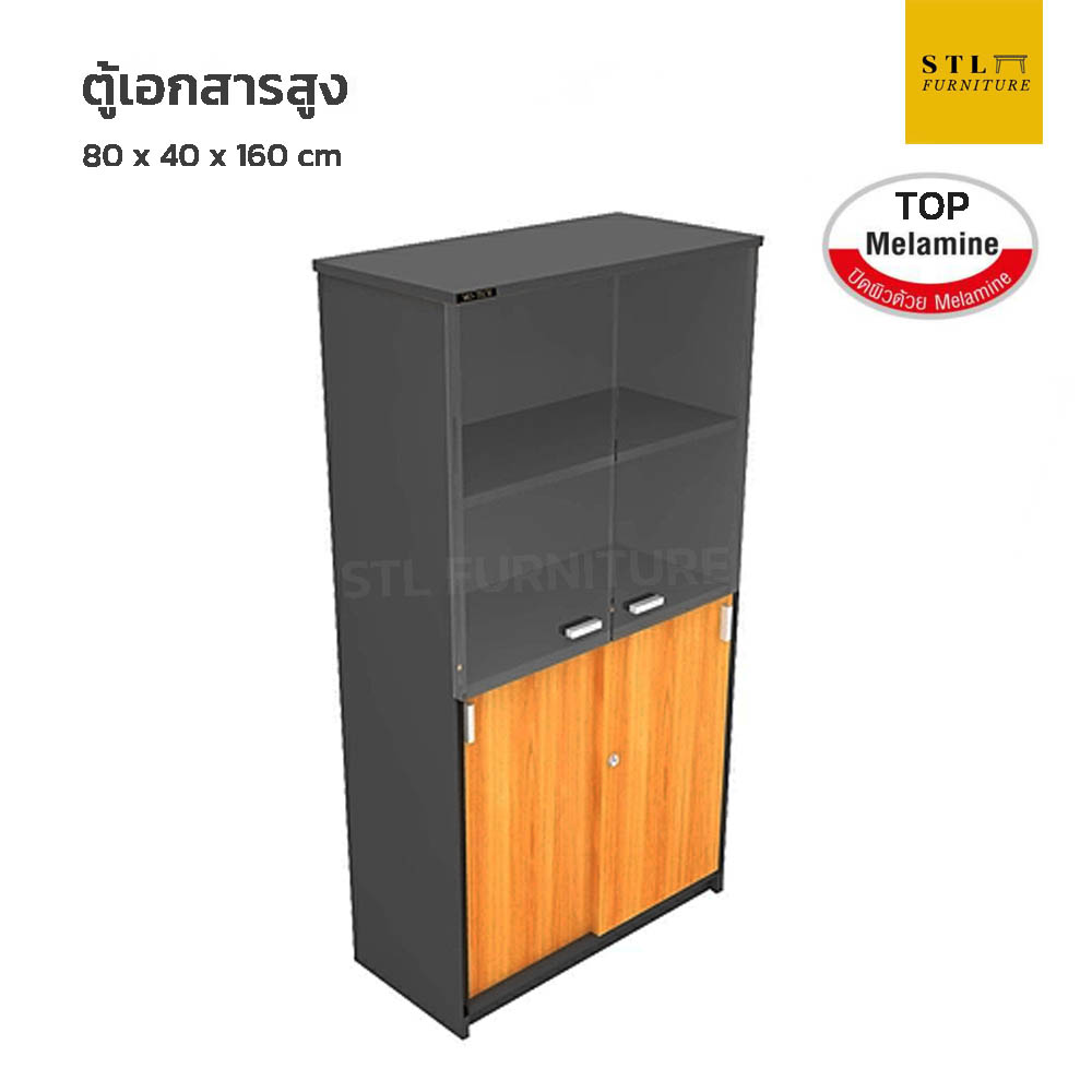 ตู้เอกสารบนบานกระจก ล่างบานทึบไลด์ (TOP MELAMINE)