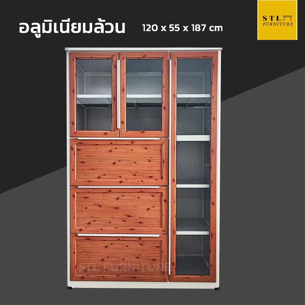 ตู้กับข้าวอลูมิเนียมล้วน 120 cm 3 ลิ้นชัก รุ่น Modish