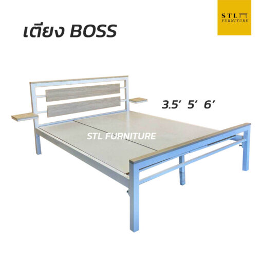 พบกับเตียงสมัยใหม่ ที่มีจุดเด่นตรงชั้นวางของหัวเตียงทั้ง 2 ด้าน เตียง BOSS เป็นเตียงเหล็กที่มีไม้บางจุด ทำให้ไม่ทื่อดูน่าเบื่อ