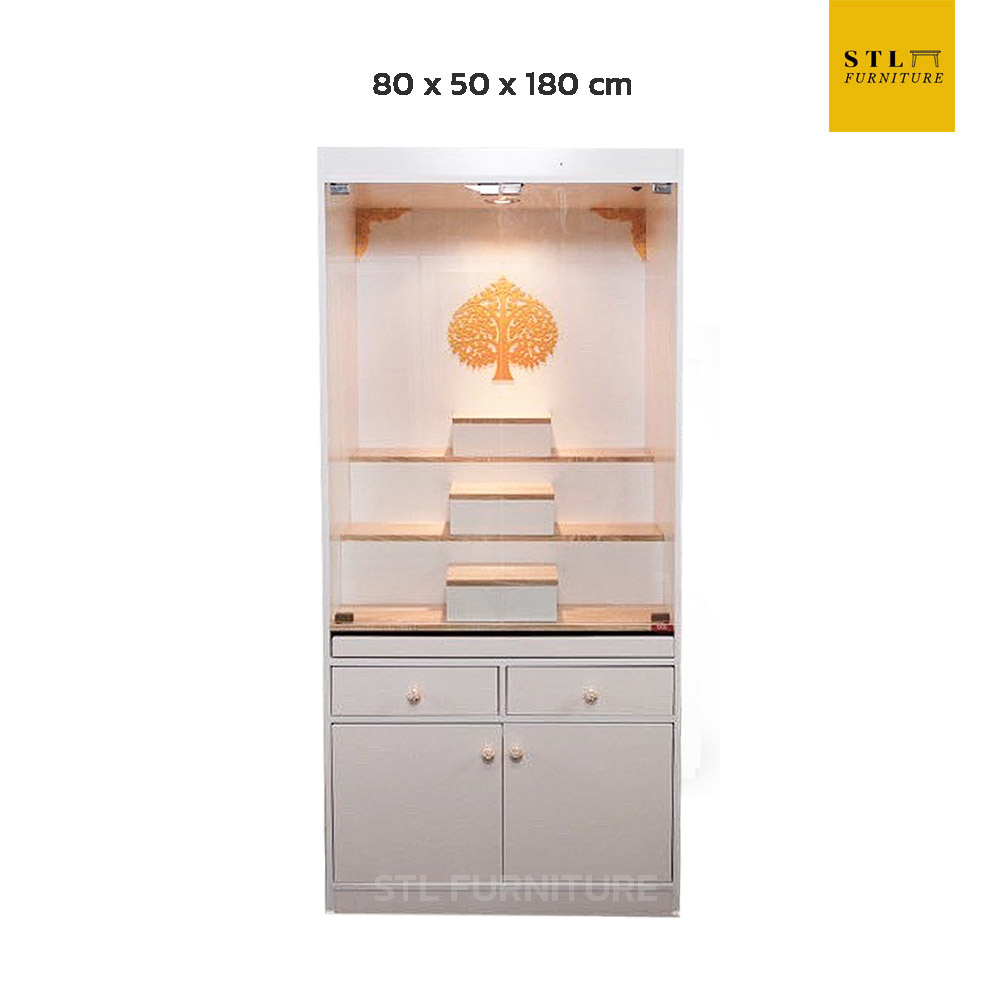 ตู้พระ minimal 80 cm มีไฟ ข้างทึบ ประตูกระจก