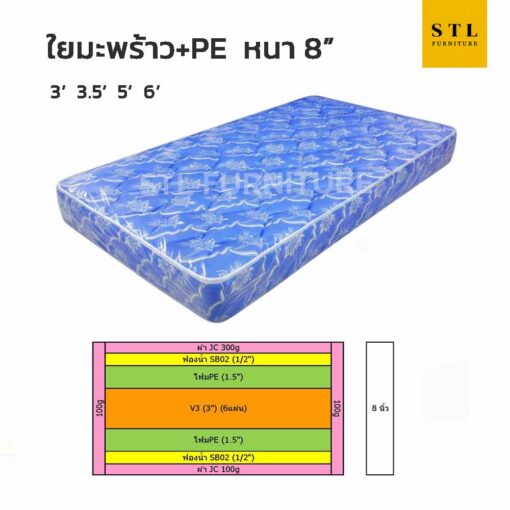 ที่นอนใยมะพร้าว+พีอี ผ้าแจ๊คการ์ด รุ่น Fix base (หนา 8 นิ้ว)