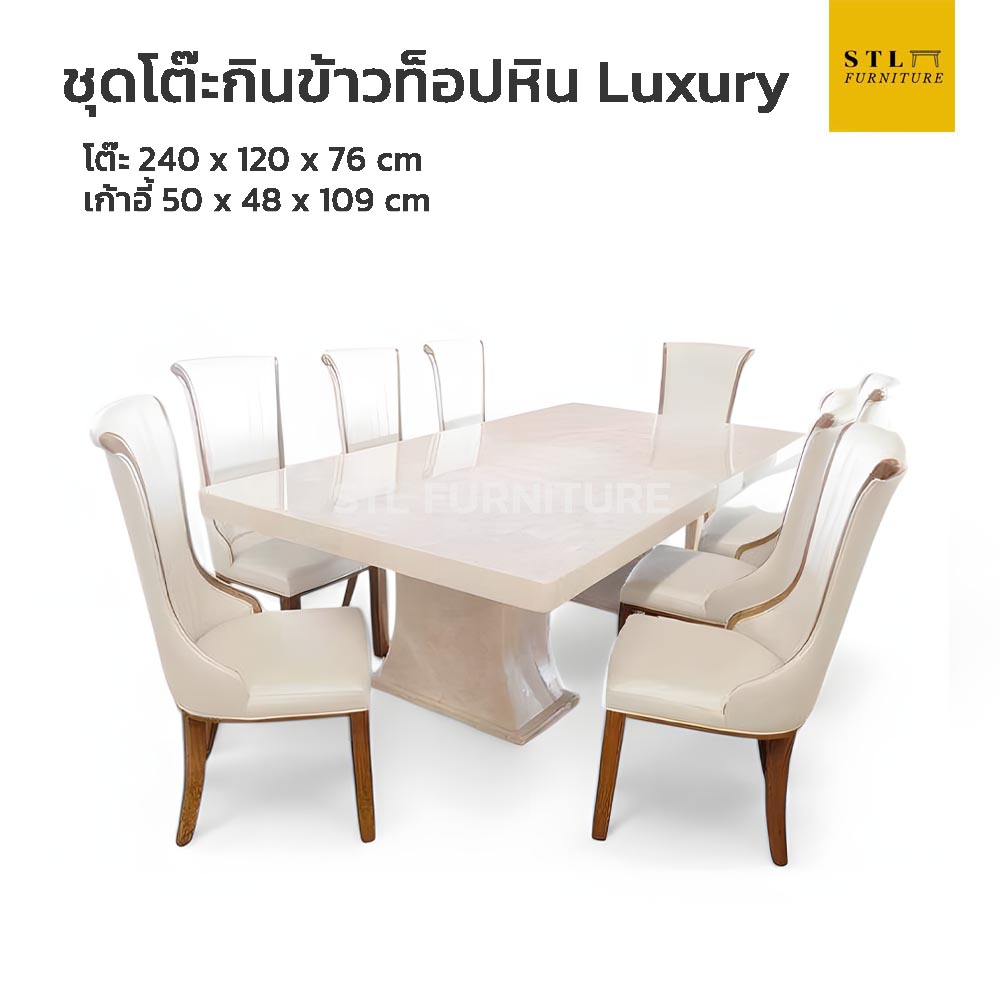 ชุดโต๊ะอาหารหินแท้ ขนาด 240 ซม. เหมาะสำหรับบ้านที่ต้องการความโอ่อ่าหรูหรา ทั้งเพื่อใช้ในชีวิตประจำวัน หรือเป็นจุดศูนย์กลางของการต้อนรับแขกในโอกาสพิเศษ