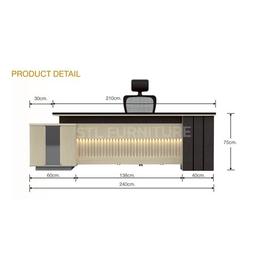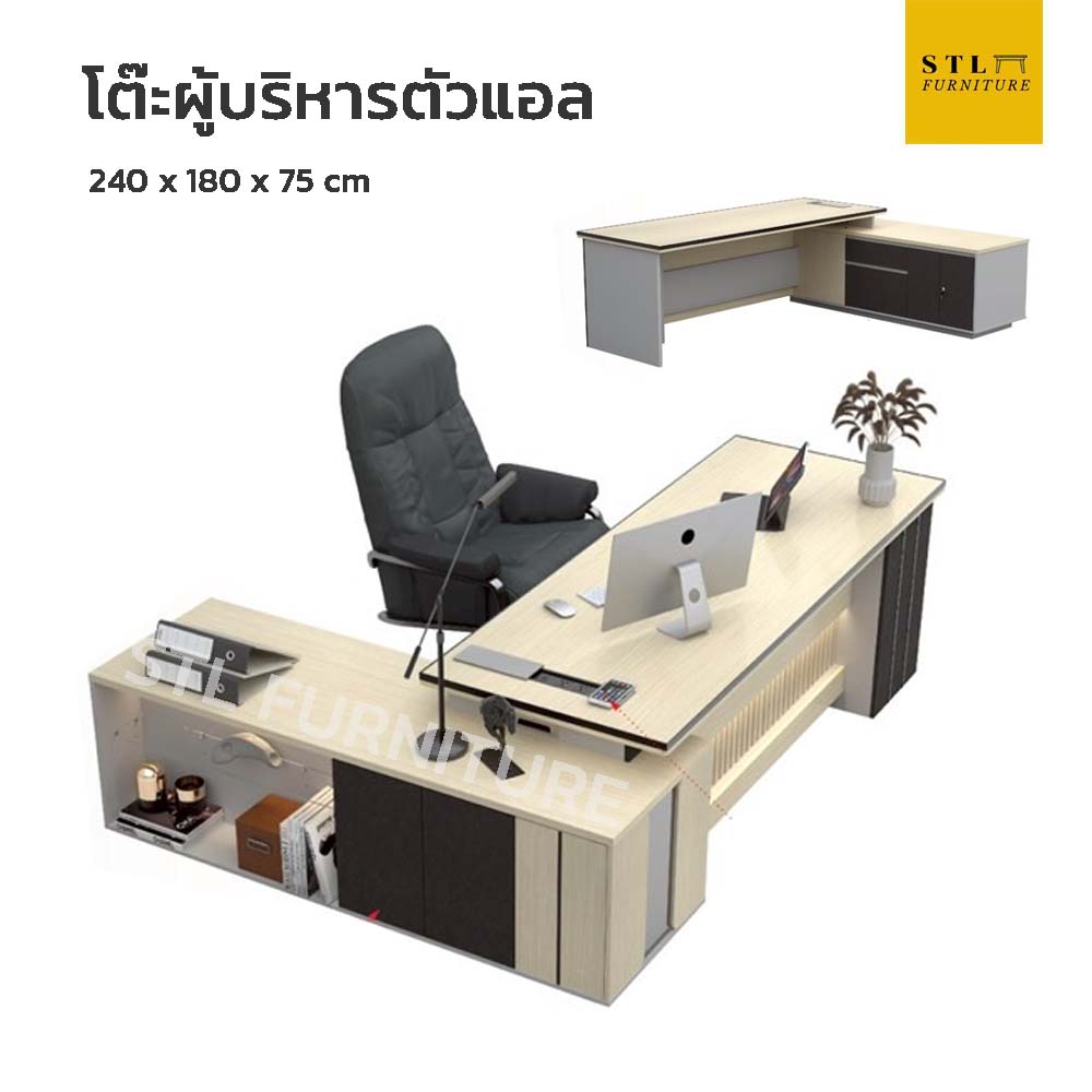 โต๊ะผู้บริหารตัวแอล 240 cm ดีไซน์สวยหรู สไตล์โมเดิร์น พร้อมฟังก์ชันครบครัน เหมาะสำหรับผู้ที่ต้องการพื้นที่ทำงานกว้างและการจัดเก็บที่หลากหลาย