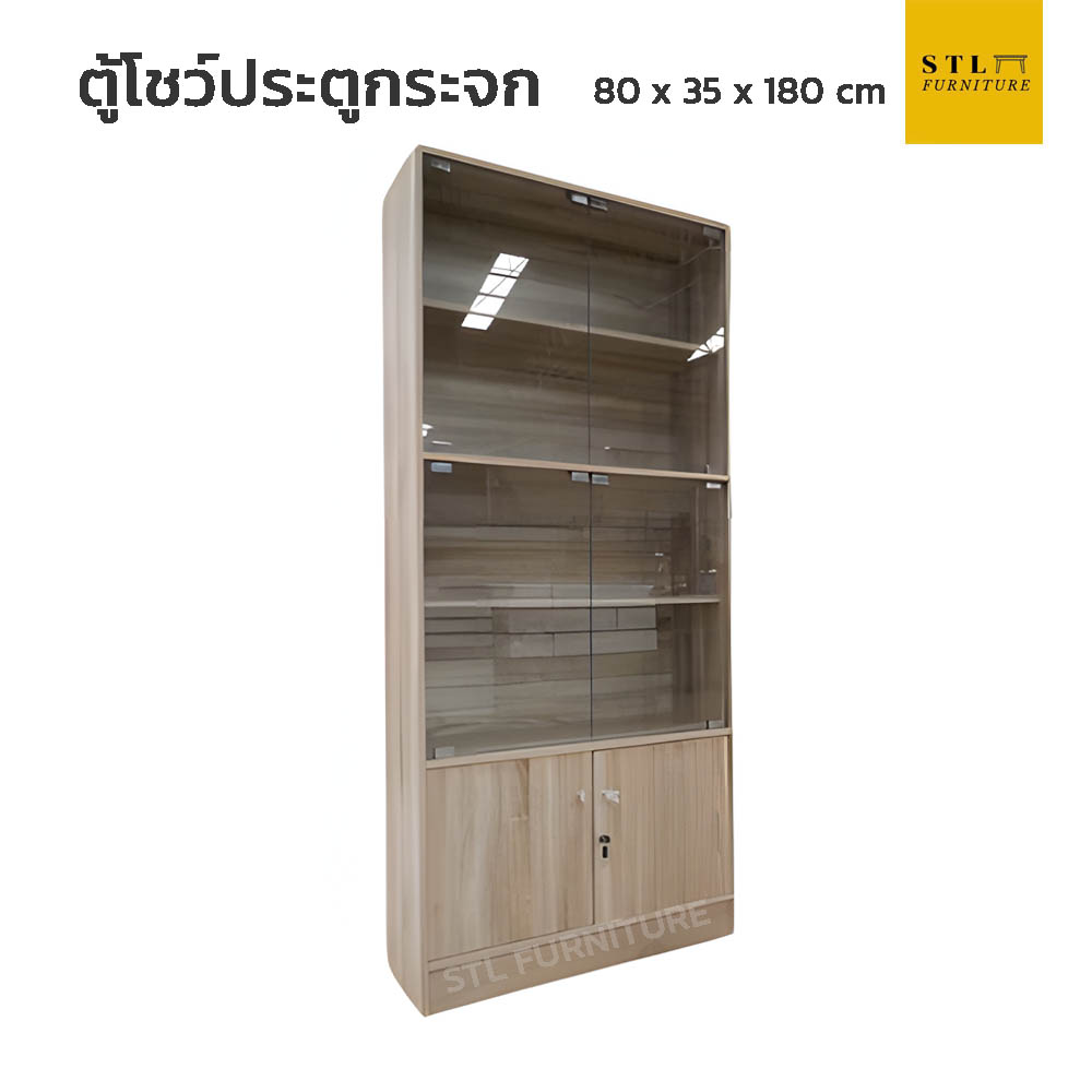 ตู้โชว์ ประตูกระจก 80 cm ล่างทึบ
