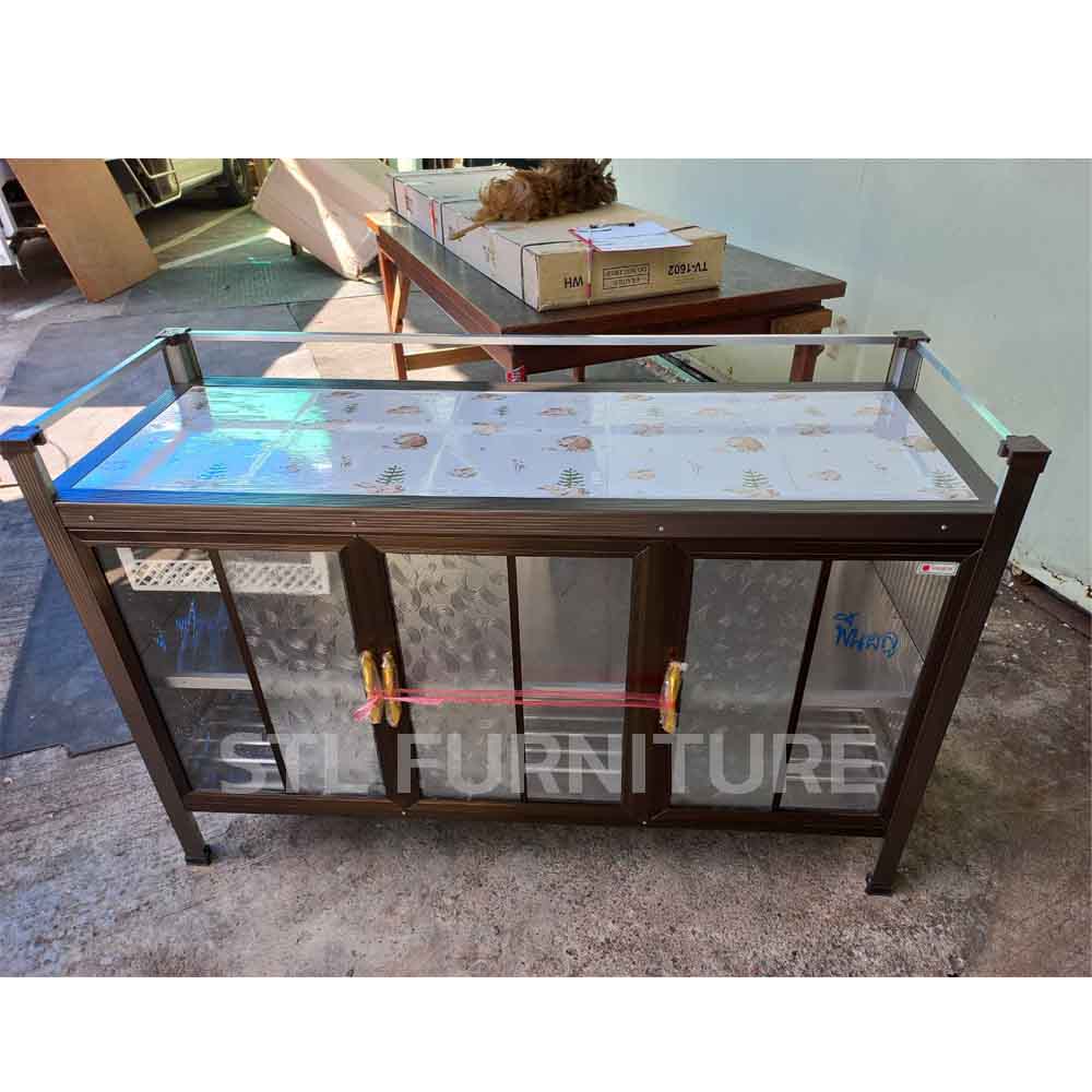 - หน้าตู้เป็นกระเบื้อง แข็งแรง รับน้ำหนักได้มาก สามารถวางเตาอบ ไมโครเวฟ เตาแก๊ส หม้อหุงข้าว ถังน้ำ หรือใช้เป็นโต๊ะเตรียมอาหาร ฯลฯ