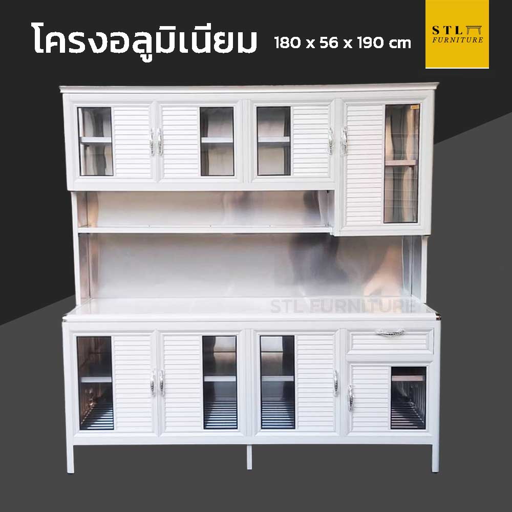 ตู้ครัวสำเร็จรูปโครงอลูมินเนียม 180 cm รุ่นมีลิ้นชัก สีอบขาว