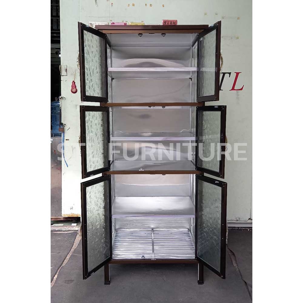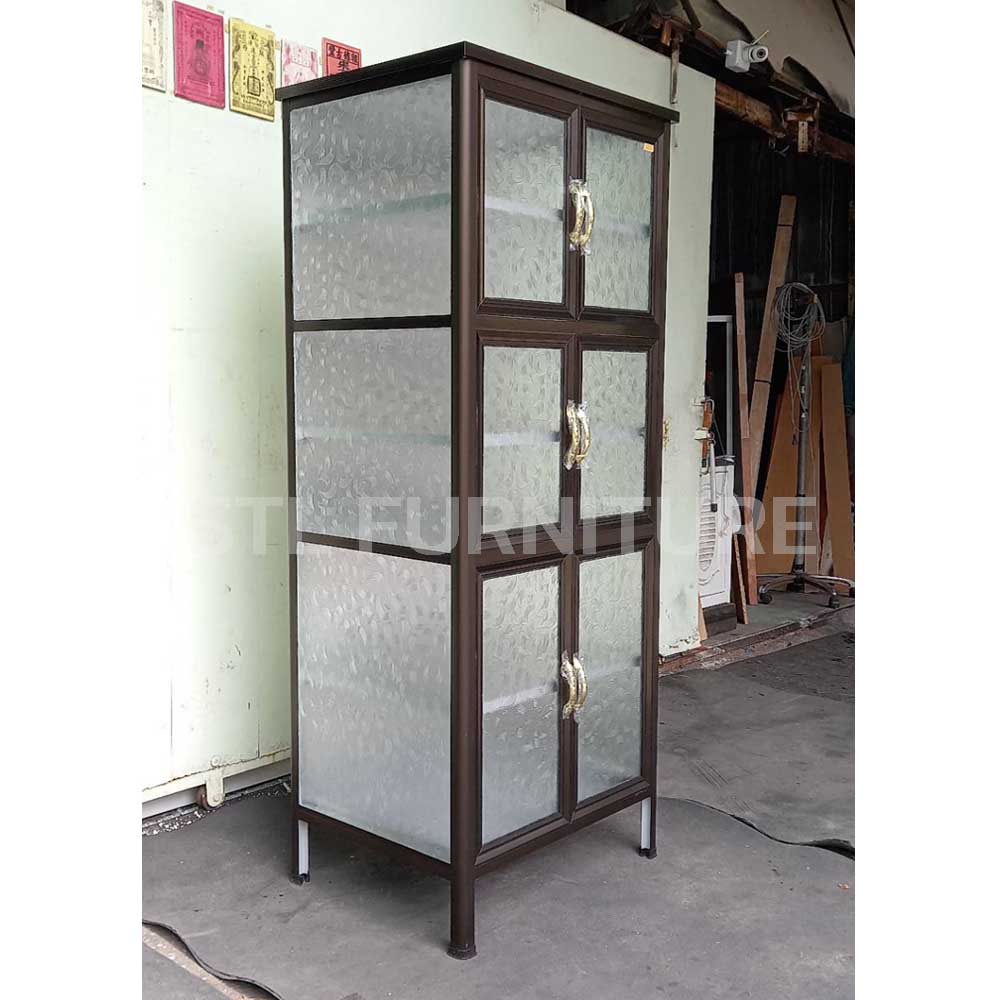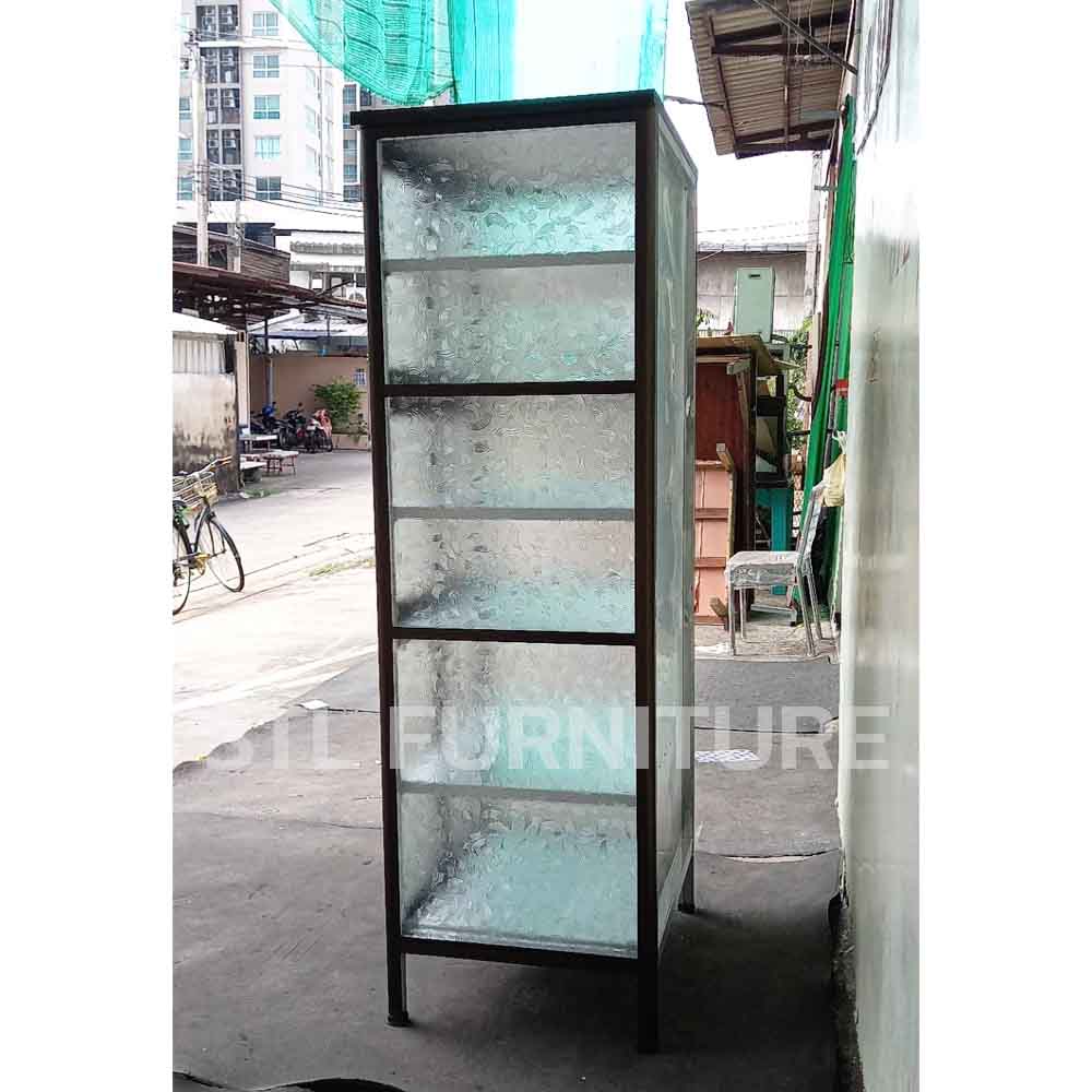 ตู้กับข้าวโครงอลูมิเนียมเสามน กระจกฝ้าเต็ม ลึกพิเศษ 60 cm