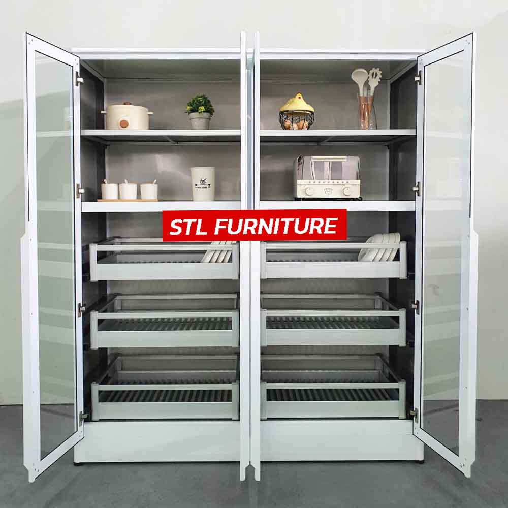 ตู้กับข้าวอลูมิเนียมล้วน 80 cm 3 ลิ้นชักคว่ำจาน รุ่น Modish