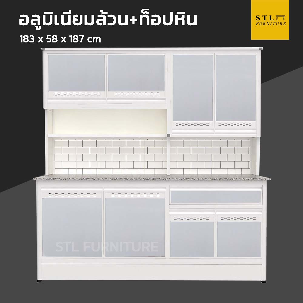 ตู้ครัวสำเร็จรูปอลูมิเนียมล้วน ท็อปหินแกรนิต ขาทึบ 183 cm