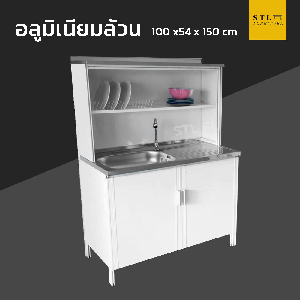 ตู้ซิงค์ล้างจาน มีคว่ำจานบน อลูมิเนียมล้วน 100 cm