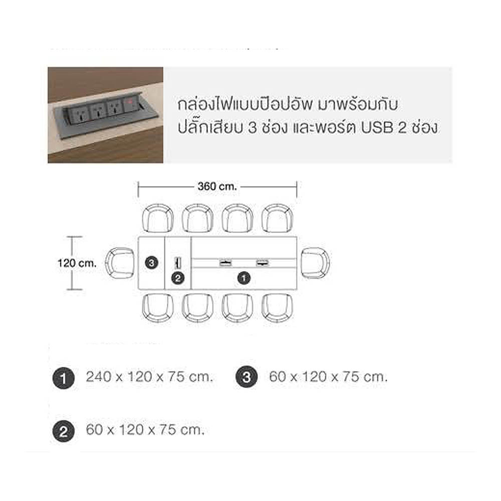 ประกอบด้วย โต๊ะขนาด 240 x 120 x 75 cm 1 ตัว