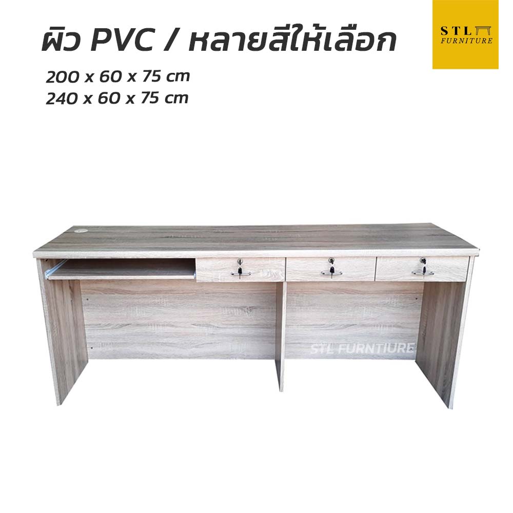 โต๊ะทำงานออฟฟิศ 1 ถาดคีบอร์ด 2 ลิ้นชัก 200 cm 240 cm