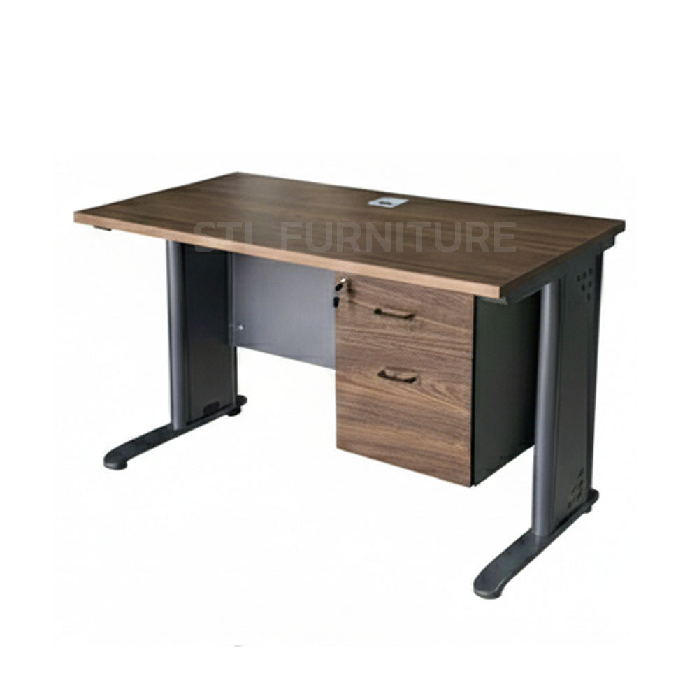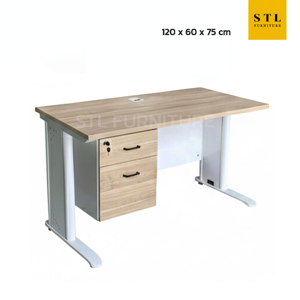 โต๊ะทำงานขาเหล็ก 120 cm มีแผ่นบังตา+ตู้ลิ้นชัก