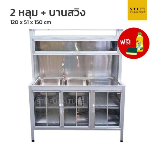 ตู้ซิงค์ล้างจาน 2 หลุม บนบานสวิง