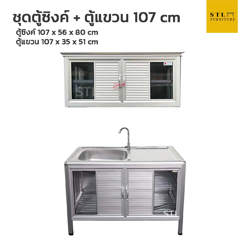 ชุดตู้ซิงค์พร้อมตู้แขวน โครงอลูมิเนียมมุนมน 107 cm