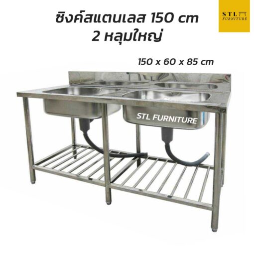 ซิงค์สแตนเลส 2 หลุมใหญ่ สำหรับร้านอาหาร สแตนแลสทั้งตัวทนทาน หลุมใหญ่