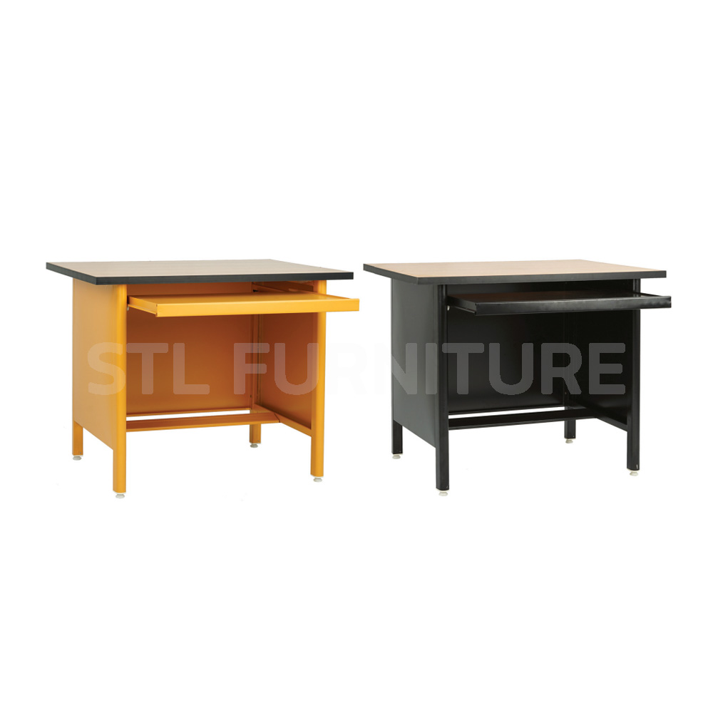 โต๊ะเหล็ก 3 ฟุต หน้าไม้ มีถาดคีบอร์ด