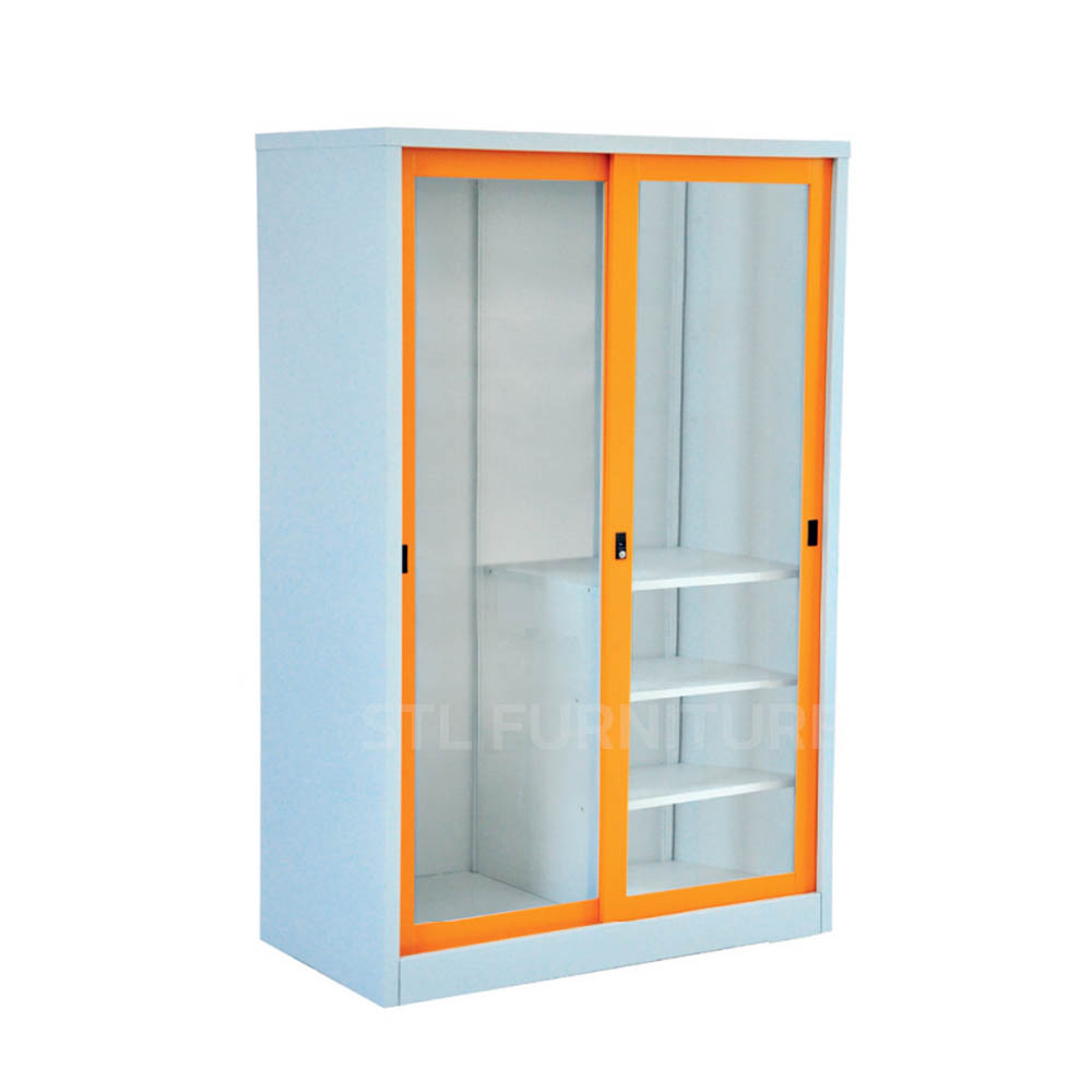 ตู้เสื้อผ้าเหล็กบานเลื่อนกระจกใส 4 ฟุต ชั้นข้าง