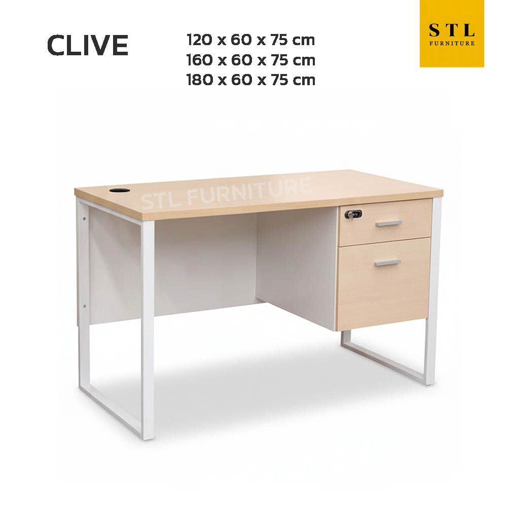 โต๊ะทำงานขาเหล็ก 2 ลิ้นชักกุญแจรหัส รุ่น Clive