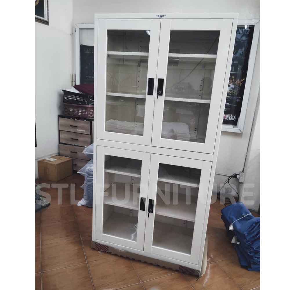 ตู้เอกสารเหล็กบานเปิด 3 ฟุต กระจกบนล่าง