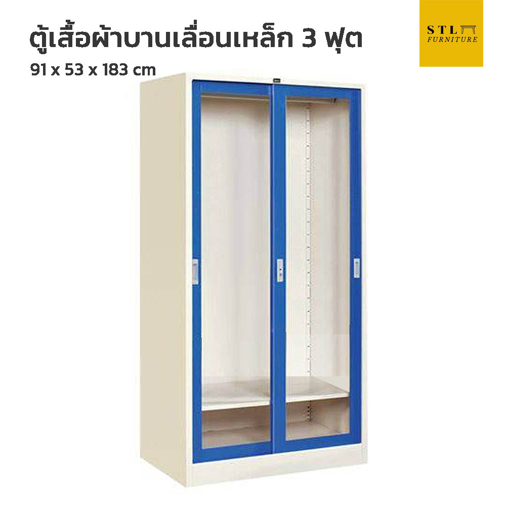ตู้เสื้อผ้าบานเลื่อนเหล็ก 3 ฟุต กระจกใส