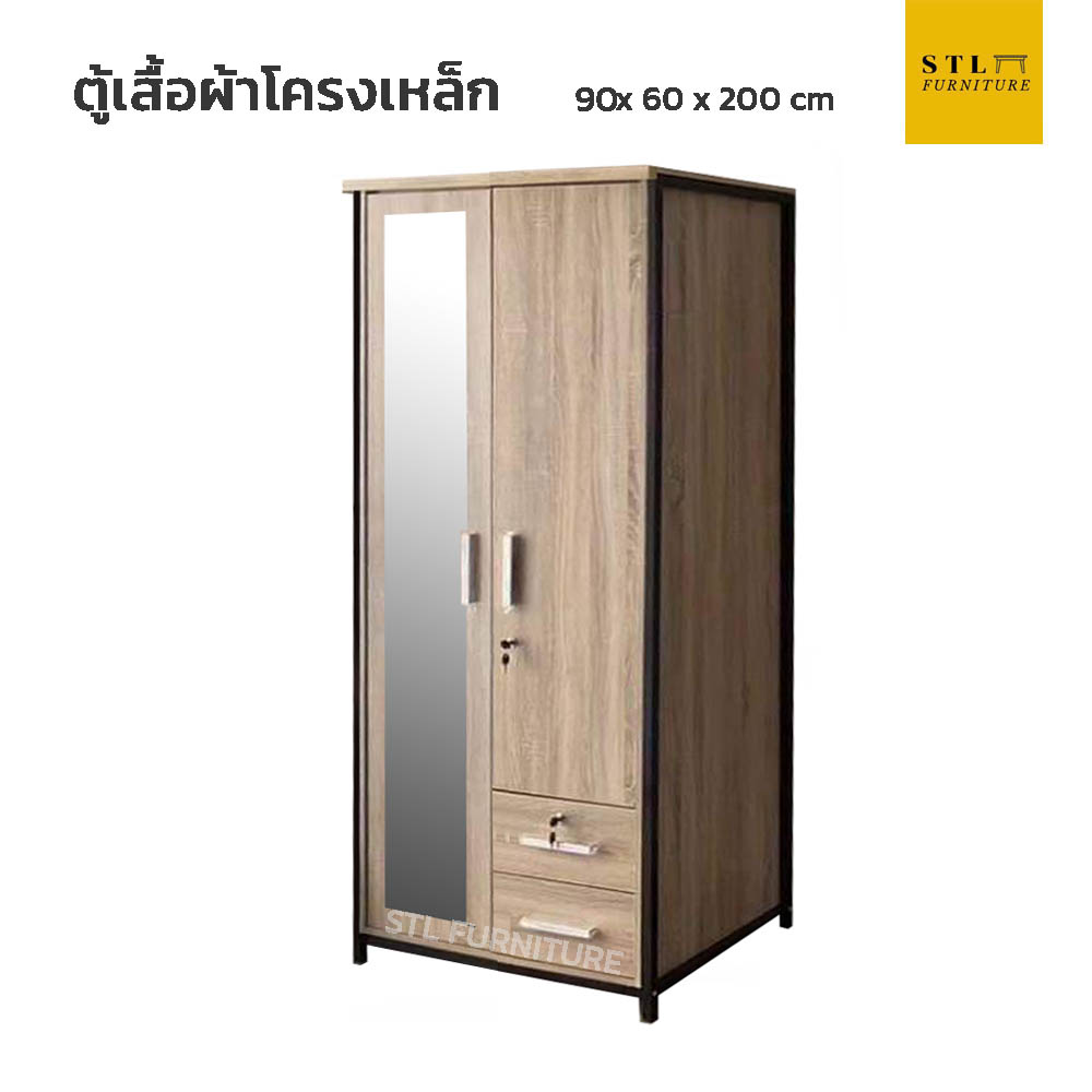 ตู้เสื้อผ้าโครงเหล็ก 90 cm กระจก