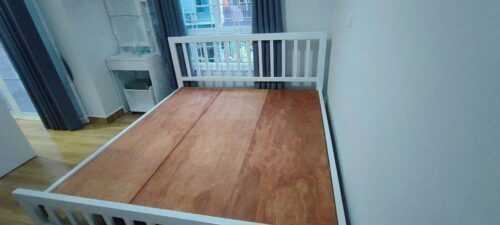 เตียงเหล็กของเรามีไม้รองเตียงให้ (ไม้อัดยางเป็นไม้ที่ผลิตจากไม้แผ่นบางมาอัดเข้าด้วยกันด้วยความร้อนสูง ไม้อัดจึงมีความหนาแน่นสูงกว่าไม้ทั่วไป และทนทานกว่าไม้ mdf) โดยข้อดีของการมีไม้รองเตียง คือ สามารถใช้ที่นอนบาง ๆ ได้ เช่น ที่นอนที่มีความหนาเพียง 2 นิ้ว หรือที่นอนที่มีความนิ่มมาก เพราะมีแผ่นไม้รับ* ในขณะที่เตียงที่ไม่มีไม้รองเตียง หากที่นอนบางมาก นอนลงไปจะเจอเหล็ก และที่นอนอาจจะตกร่องเหล็กได้ อ่านเพิ่มเติม ไม้รองเตียงจำเป็นไหม
