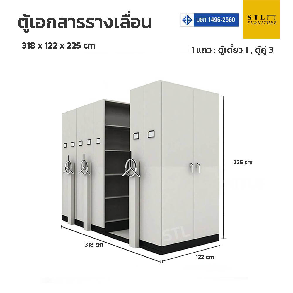 ตู้เอกสารเหล็กแบบรางเลื่อน 1 แถว (ตู้เดี่ยว 1 ตู้คู่ 3) ได้รับการรับรองมาตรฐานมอก.