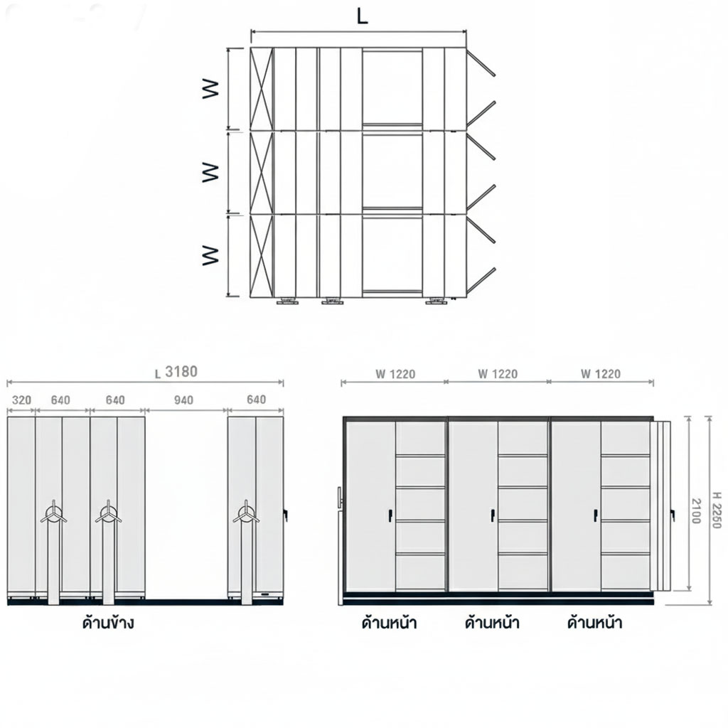 ตู้เอกสารเหล็กแบบรางเลื่อน 1 แถว (ตู้เดี่ยว 3 ตู้คู่ 9) ได้รับการรับรองมาตรฐานมอก.