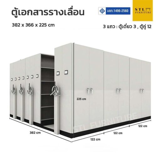 ตู้เอกสารเหล็กแบบรางเลื่อน 1 แถว (ตู้เดี่ยว 3 ตู้คู่ 12) ได้รับการรับรองมาตรฐานมอก.