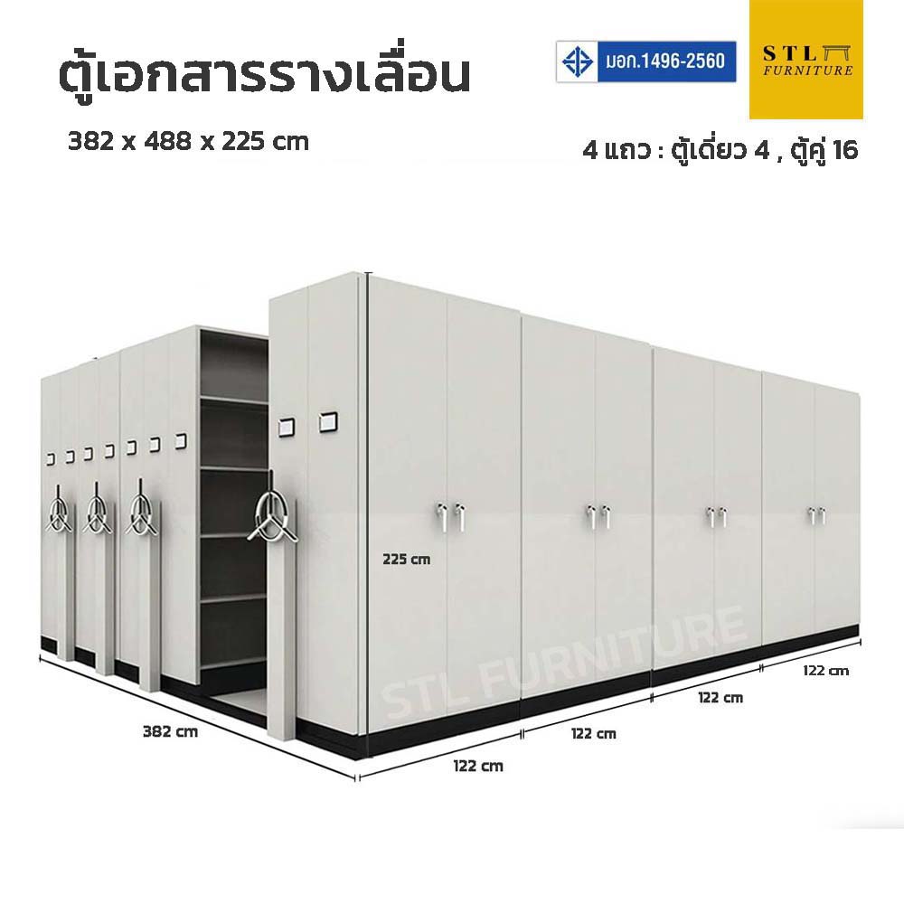 ตู้เอกสารเหล็กแบบรางเลื่อน 1 แถว (ตู้เดี่ยว 4 ตู้คู่ 16) ได้รับการรับรองมาตรฐานมอก.