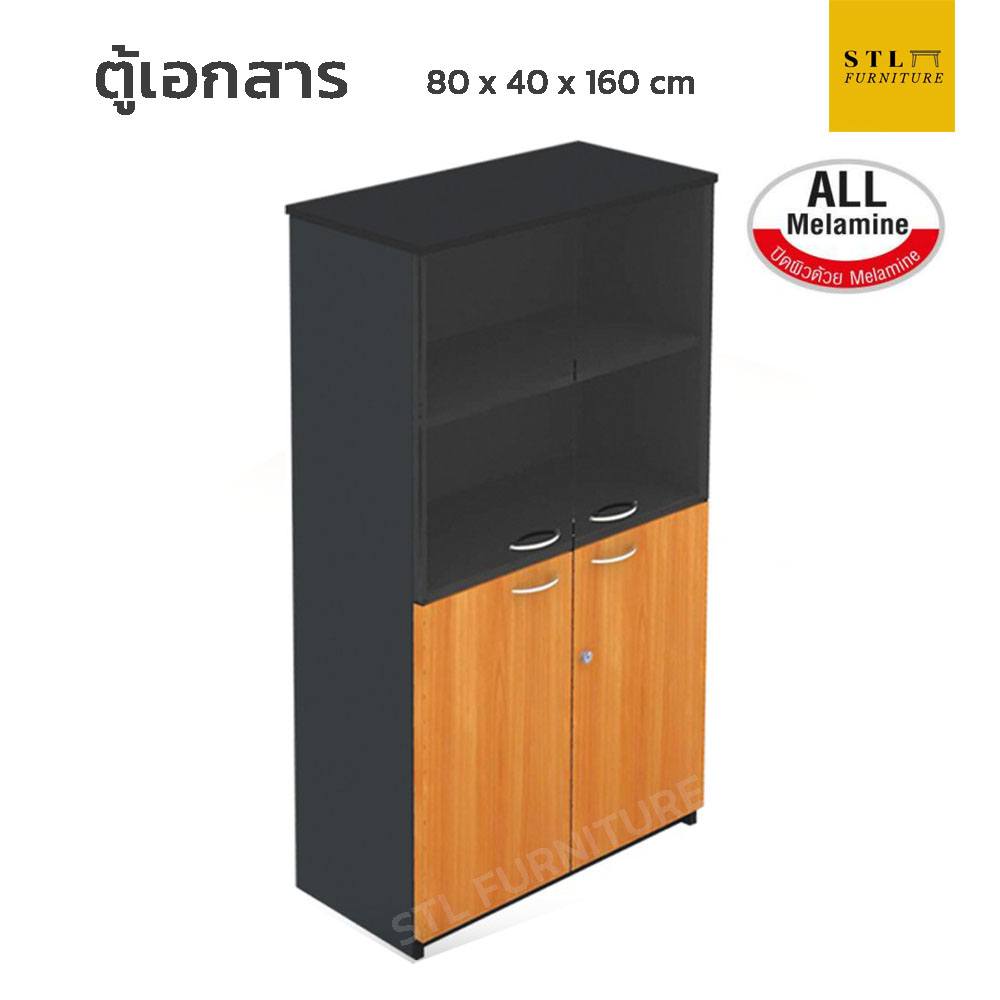 ตู้ใส่แฟ้มเอกสาร 4 ชั้น บนบานเปิดกระจก ล่างบานเปิดทึบ (ALL MELAMINE)