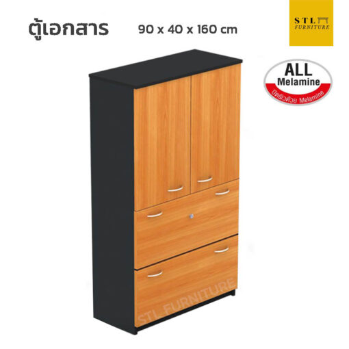ตู้ใส่แฟ้มเอกสาร 4 ชั้น บนบานเปิดทึบ ล่าง 2 ลิ้นชัก (ALL MELAMINE)