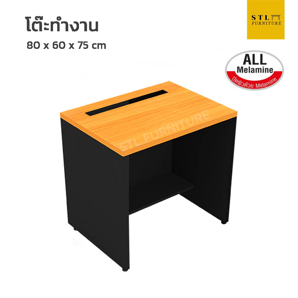 หน้าโต๊ะทำจากไม้ปาติเกิล หนา 28 มม.ปิดผิวเมลามีน กันน้ำ ความชื้น รอยขีดข่วน ปิดขอบด้วย PVC Edging ป้องกันการกระแทก ความหนา 2 มม.