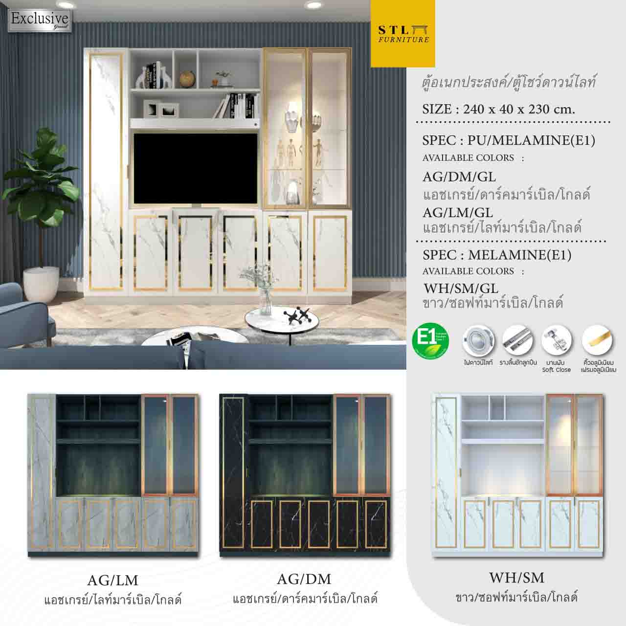 ชั้นวางทีวี+ตู้โชว์ดาวไลท์ ฮอลลีวู้ด 240 cm