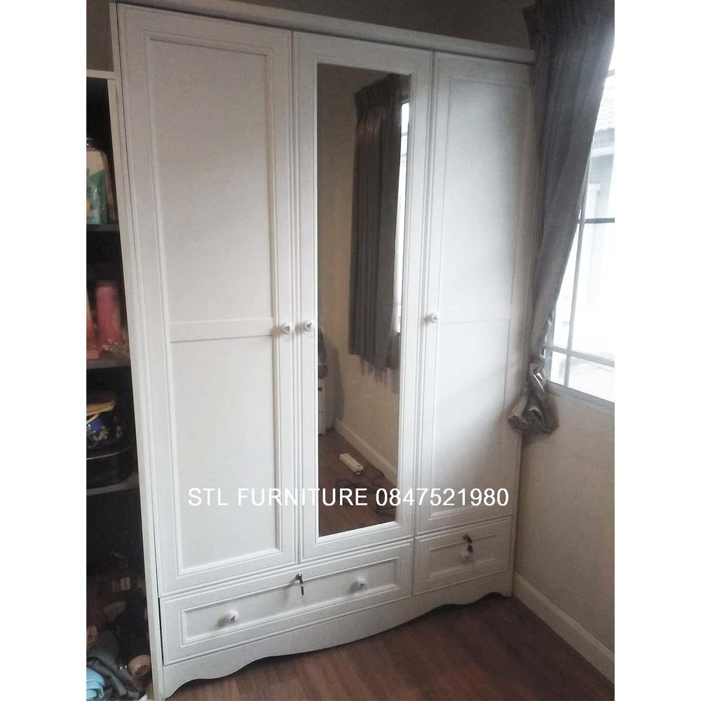 รายละเอียดตู้เสื้อผ้าวินเทจ สีขาว