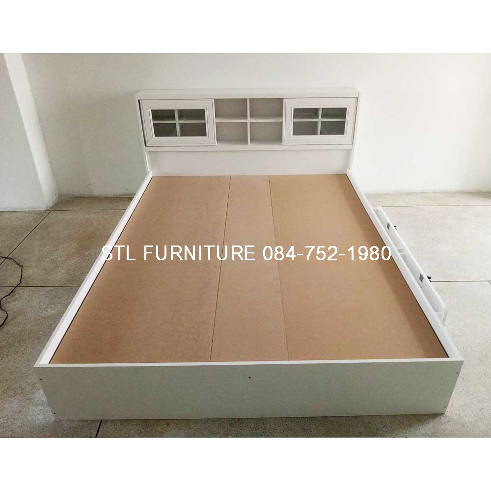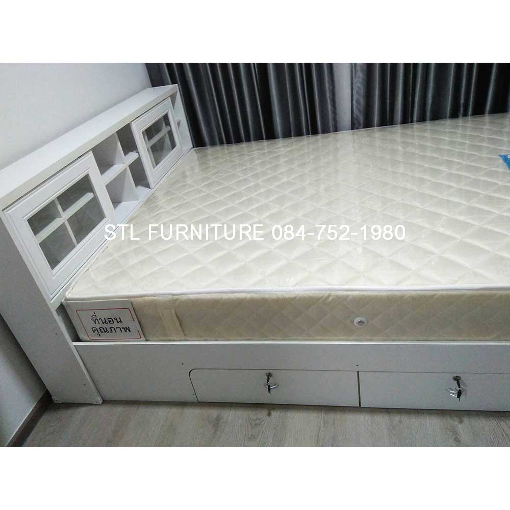 หัวเตียงออกแบบมาให้สามารถวางของได้ ประตูเป็นกระจกบานสไลค์เลื่อนซ้ายขวา โดยเตียง3.5 ฟุต จะมีประตู 1 บาน เตียง 5 ฟุต และ 6 ฟุต จะมี 2 บาน