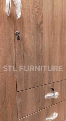 แม้ว่าตู้ลิ้นชักส่วนใหญ่ลิ้นชักที่ล็อคได้มักอยู่ลิ้นชักบน แต่การจะแกะออกมาไม่ได้ง่ายขนาดนั้น เพราะแผ่นท็อปบนไม่ได้วางลงไปแล้วยิงน็อต (หากตู้ลิ้นชักรุ่นใดใช้วิธียิงน็อตที่แผ่นท็อป ท่านก็สามารถแกะแผ่นท็อปออกได้โดยง่าย) แต่เป็นลักษณะเกือกม้าบิดล็อค เกือกม้าบิดล็อคคืออะไร อ่านเพิ่มเติมที่ อุปกรณ์เฟอร์นิเจอร์น็อคดาวน์มีอะไรบ้าง ตัวอย่างตู้ลิ้นชักรุ่นนี้ การจะเข้าถึงลิ้นชักช่องบน มีขั้นตอนดังนี้